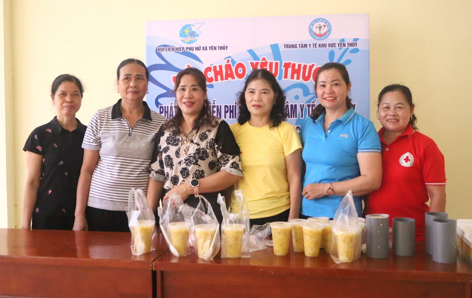 Chương trình “Nồi cháo yêu thương” được Hội Liên hiệp Phụ nữ xã Yên Thủy cùng cán bộ hội viên phụ nữ các thôn, xóm/ khu phố tổ chức, tiếp tục duy trì tại Trung tâm Y tế khu vực Yên Thủy vào 9h30 sáng thứ 6 hàng tuần.