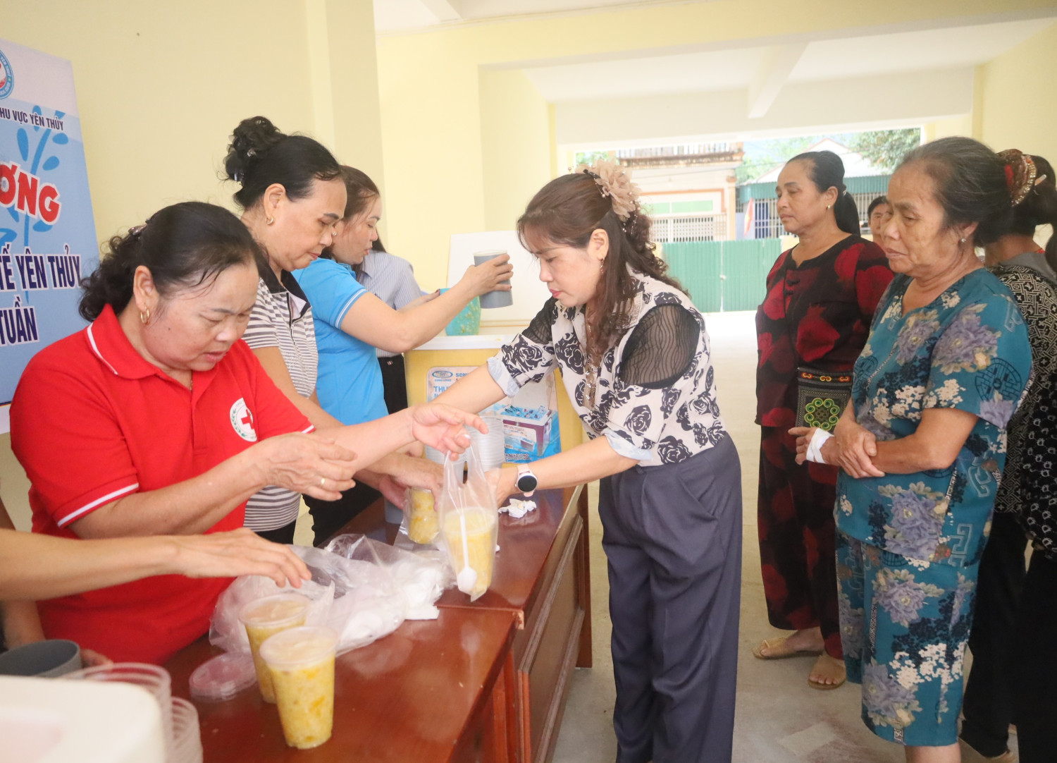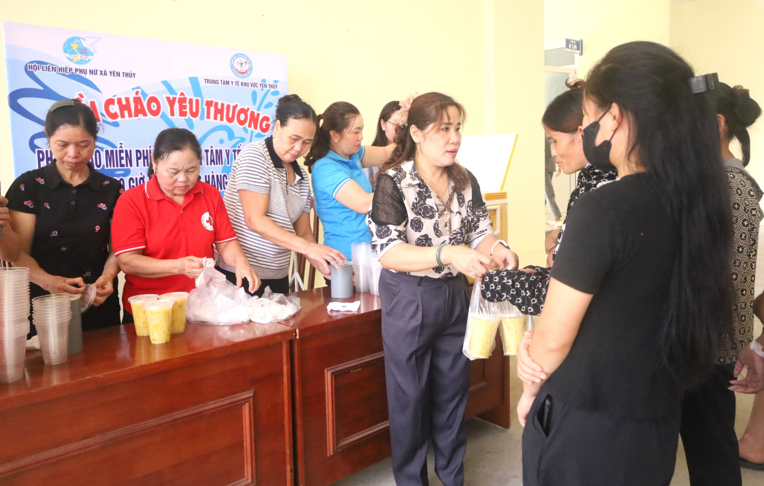 Phát cháo miễn phí cho bệnh nhân đang điều trị tại TTYT khu vực Yên Thủy