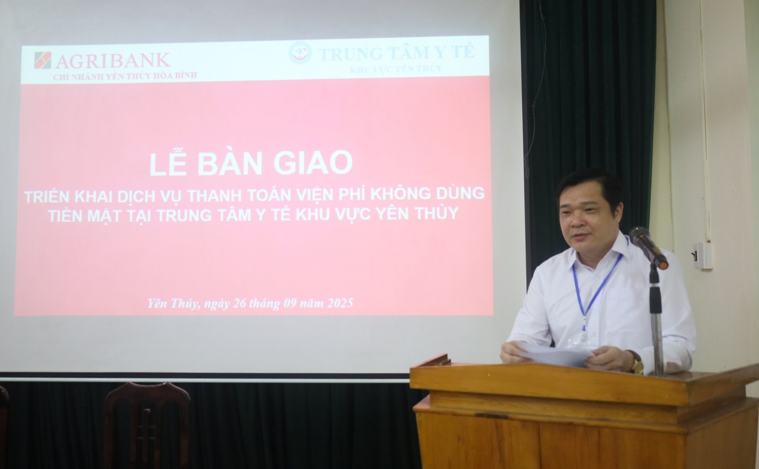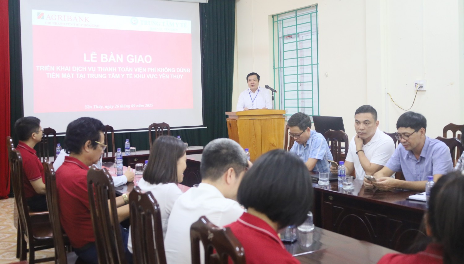 Chiều ngày 26/9, Trung tâm Y tế khu vực Yên Thủy tổ chức Hội nghị bàn giao Hợp đồng triển khai Mở cổng phần mềm quản lý bệnh viện liên kết ngân hàng thanh toán không dùng tiền mặt - một dấu mốc quan trọng trong lộ trình chuyển đổi số của đơn vị.
