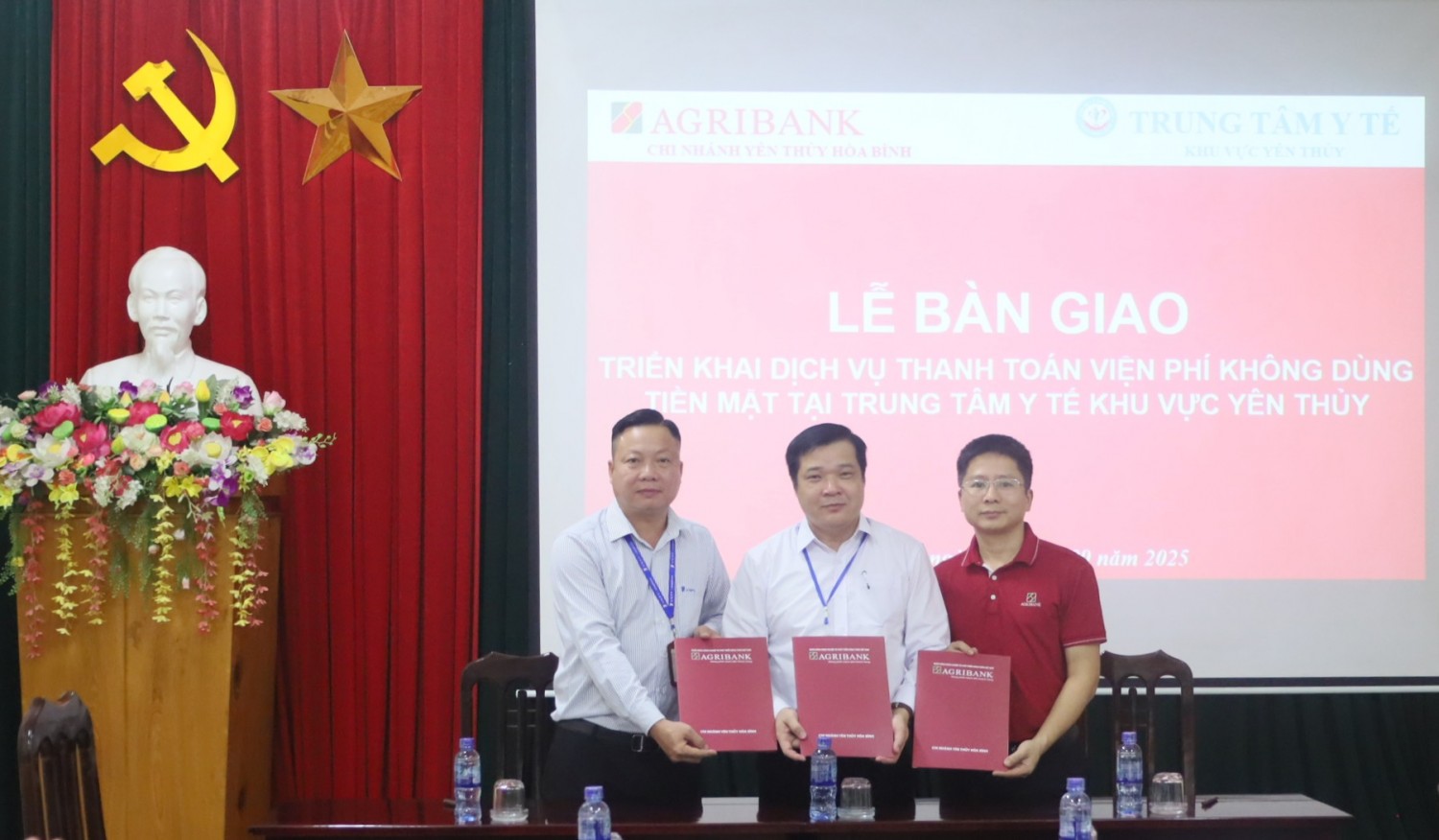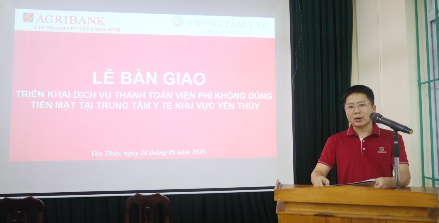Ký kết biên bản bàn giao giữa TTYT và các đơn vị tài trợ Tham dự Hội nghị có lãnh đạo UBND và Phòng Văn hoá - Xã hội 3 xã: Yên Thủy, Yên Trị và Lạc Lương. Về phía Ngân hàng Nông nghiệp & PTNT (Agribank) Chi nhánh Yên Thủy có ông Bùi Phan Điệp - Giám đốc, cùng các cán bộ Ngân hàng. Lãnh đạo Trung tâm viễn thông VNPT Hòa Bình. Về phía Trung tâm Y tế có BSCKII Bùi Văn Quyền - Giám đốc Trung tâm, cùng các đồng chí trong Ban giám đốc, Trưởng khoa/ phòng và trưởng Trạm Y tế các xã. Thực hiện chủ trương lớn của Đảng và Nhà nước về đẩy mạnh chuyển đổi số trong lĩnh vực y tế. Trung tâm Y tế khu vực Yên Thủy phối hợp cùng Ngân hàng Nông nghiệp & PTNT Chi nhánh Yên Thủy và Trung tâm Kinh doanh VNPT Hòa Bình, chính thức triển khai Module thanh toán viện phí điện tử không dùng tiền mặt. Trung tâm Y tế khu vực Yên Thủy - đơn vị trực tiếp sử dụng dịch vụ, triển khai hệ thống phần mềm quản lý bệnh viện kết nối thanh toán điện tử không dùng tiền mặt, áp dụng đồng bộ tại toàn bộ các khoa, phòng và trạm y tế. Ngân hàng Nông nghiệp & PTNT Chi nhánh Yên Thủy (Agribank) - đơn vị đồng hành, tài trợ kinh phí triển khai 90.000.000 đồng, tạo điều kiện để Trung tâm Y tế sớm đưa vào áp dụng phương thức thanh toán viện phí điện tử. Trung tâm Kinh doanh VNPT Hòa Bình - đơn vị cung cấp, vận hành hệ thống phần mềm; bảo đảm kết nối đồng bộ với hạ tầng của ngành Y tế và ngân hàng, duy trì hoạt động ổn định và hỗ trợ kỹ thuật. Việc triển khai có ý nghĩa thiết thực nhằm: Hiện đại hóa công tác quản lý tài chính y tế; Tạo thuận lợi tối đa cho người dân khi tiếp cận dịch vụ khám chữa bệnh; Góp phần nâng cao hiệu quả quản lý, công khai, minh bạch. Đây là dấu mốc quan trọng, hiện thực hóa chủ trương chuyển đổi số trong ngành y tế, góp phần nâng cao chất lượng khám chữa bệnh, phục vụ nhân dân ngày càng thuận lợi và nhanh chóng. Trung tâm Y tế khu vực Yên Thủy cam kết phối hợp chặt chẽ cùng các đối tác để triển khai đồng bộ, hiệu quả, mang lại lợi ích thiết thực cho người bệnh và cộng đồng.